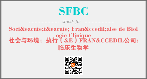 上述内容是“Société Française de Biologie Clinique”作为“SFBC”的缩写,解释为“社会与环境;执行(&E)FRAN&CCEDIL公司;临床生物学”时的信息,以及英文缩略词SFBC所代表的英文单词,其对应的中文拼音、详细解释以及在英文中的流行度和相关分类、应用领域及应用示例等。