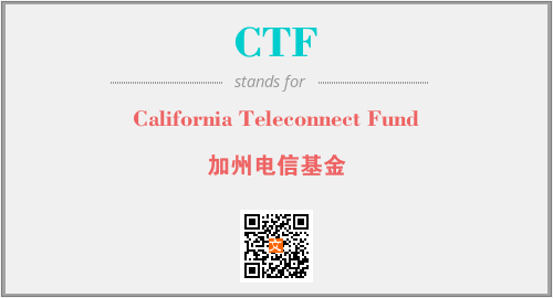 上述内容是“California Teleconnect Fund”作为“CTF”的缩写,解释为“加州电信基金”时的信息,以及英文缩略词CTF所代表的英文单词,其对应的中文拼音、详细解释以及在英文中的流行度和相关分类、应用领域及应用示例等。