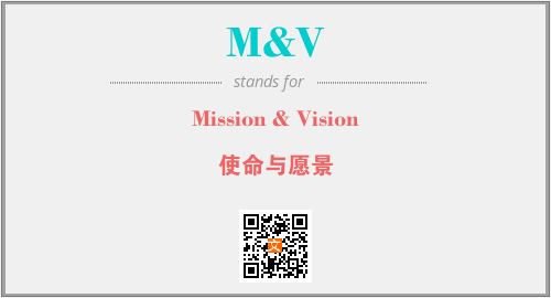 英文缩略词“M&V”经常作为“Mission & Vision”的英文缩写来使用,中文表示:“使命与愿景”。本文将详细介绍英文缩写词M&V所代表英文单词,其对应的中文拼音、详细解释以及在英语中的流行度。此外,还有关于缩略词M&V的分类、应用领域及相关应用示例等。