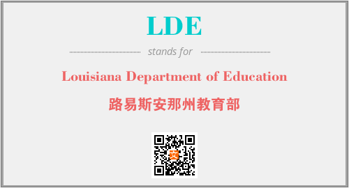 上述内容是“Louisiana Department of Education”作为“LDE”的缩写,解释为“路易斯安那州教育部”时的信息,以及英文缩略词LDE所代表的英文单词,其对应的中文拼音、详细解释以及在英文中的流行度和相关分类、应用领域及应用示例等。