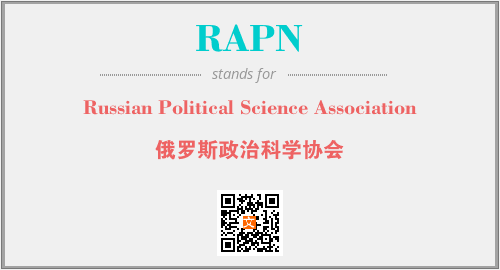 上述内容是“Russian Political Science Association”作为“RAPN”的缩写,解释为“俄罗斯政治科学协会”时的信息,以及英文缩略词RAPN所代表的英文单词,其对应的中文拼音、详细解释以及在英文中的流行度和相关分类、应用领域及应用示例等。