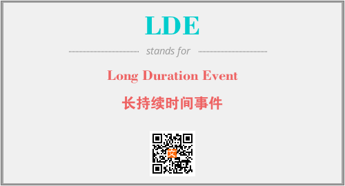 上述内容是“Long Duration Event”作为“LDE”的缩写,解释为“长持续时间事件”时的信息,以及英文缩略词LDE所代表的英文单词,其对应的中文拼音、详细解释以及在英文中的流行度和相关分类、应用领域及应用示例等。