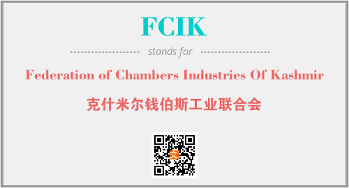 上述内容是“Federation of Chambers Industries Of Kashmir”作为“FCIK”的缩写,解释为“克什米尔钱伯斯工业联合会”时的信息,以及英文缩略词FCIK所代表的英文单词,其对应的中文拼音、详细解释以及在英文中的流行度和相关分类、应用领域及应用示例等。