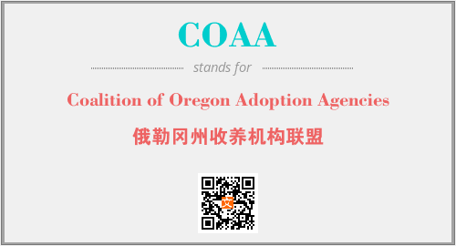 上述内容是“Coalition of Oregon Adoption Agencies”作为“COAA”的缩写,解释为“俄勒冈州收养机构联盟”时的信息,以及英文缩略词COAA所代表的英文单词,其对应的中文拼音、详细解释以及在英文中的流行度和相关分类、应用领域及应用示例等。