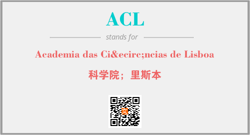 英文缩略词“ACL”经常作为“Academia das Ciências de Lisboa”的英文缩写来使用,中文表示:“科学院;里斯本”。本文将详细介绍英文缩写词ACL所代表英文单词,其对应的中文拼音、详细解释以及在英语中的流行度。此外,还有关于缩略词ACL的分类、应用领域及相关应用示例等。