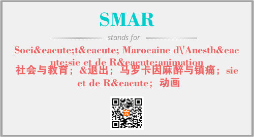 英文缩略词“SMAR”经常作为“Société Marocaine d\'Anesthésie et de Réanimation”的英文缩写来使用,中文表示:“社会与教育;&退出;马罗卡因麻醉与镇痛;sie et de Ré;动画”。本文将详细介绍英文缩写词SMAR所代表英文单词,其对应的中文拼音、详细解释以及在英语中的流行度。此外,还有关于缩略词SMAR的分类、应用领域及相关应用示例等。