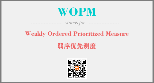 上述内容是“Weakly Ordered Prioritized Measure”作为“WOPM”的缩写,解释为“弱序优先测度”时的信息,以及英文缩略词WOPM所代表的英文单词,其对应的中文拼音、详细解释以及在英文中的流行度和相关分类、应用领域及应用示例等。