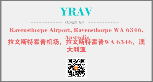 上述内容是“Ravensthorpe Airport, Ravensthorpe WA 6346, Australia”作为“YRAV”的缩写,解释为“拉文斯特霍普机场,拉文斯特霍普WA 6346,澳大利亚”时的信息,以及英文缩略词YRAV所代表的英文单词,其对应的中文拼音、详细解释以及在英文中的流行度和相关分类、应用领域及应用示例等。
