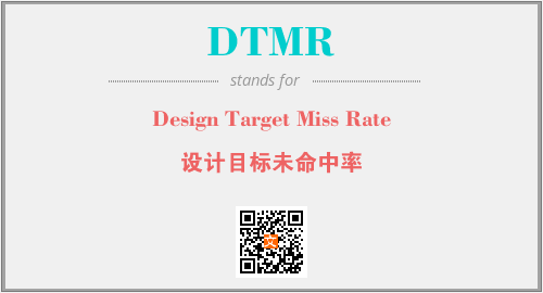 上述内容是“Design Target Miss Rate”作为“DTMR”的缩写,解释为“设计目标未命中率”时的信息,以及英文缩略词DTMR所代表的英文单词,其对应的中文拼音、详细解释以及在英文中的流行度和相关分类、应用领域及应用示例等。
