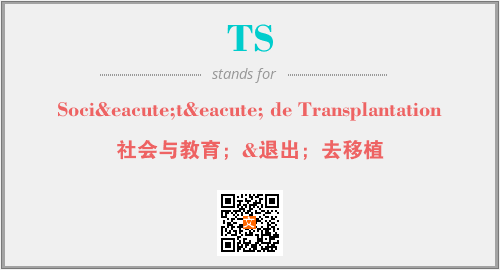 上述内容是“Société de Transplantation”作为“TS”的缩写,解释为“社会与教育;&退出;去移植”时的信息,以及英文缩略词TS所代表的英文单词,其对应的中文拼音、详细解释以及在英文中的流行度和相关分类、应用领域及应用示例等。