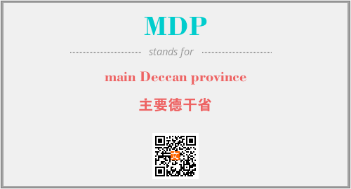 上述内容是“main Deccan province”作为“MDP”的缩写,解释为“主要德干省”时的信息,以及英文缩略词MDP所代表的英文单词,其对应的中文拼音、详细解释以及在英文中的流行度和相关分类、应用领域及应用示例等。