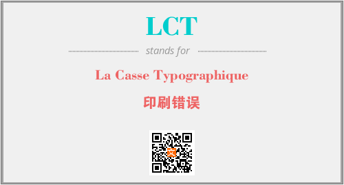 以上为La Casse Typographique英文缩略词LCT的中文解释,以及该英文缩写在英语的流行度、分类和应用领域方面的信息。