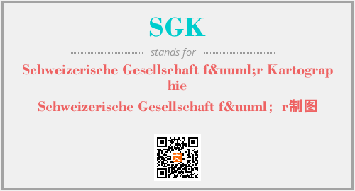 上述内容是“Schweizerische Gesellschaft für Kartographie”作为“SGK”的缩写,解释为“Schweizerische Gesellschaft fü;r制图”时的信息,以及英文缩略词SGK所代表的英文单词,其对应的中文拼音、详细解释以及在英文中的流行度和相关分类、应用领域及应用示例等。