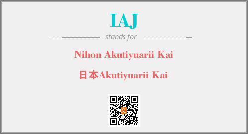 上述内容是“Nihon Akutiyuarii Kai”作为“IAJ”的缩写,解释为“日本Akutiyuarii Kai”时的信息,以及英文缩略词IAJ所代表的英文单词,其对应的中文拼音、详细解释以及在英文中的流行度和相关分类、应用领域及应用示例等。