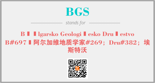 以上为Bʹʹlgarsko Geologičesko Družestvo英文缩略词BGS的中文解释,以及该英文缩写在英语的流行度、分类和应用领域方面的信息。