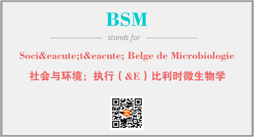 上述内容是“Société Belge de Microbiologie”作为“BSM”的缩写,解释为“社会与环境;执行(&E)比利时微生物学”时的信息,以及英文缩略词BSM所代表的英文单词,其对应的中文拼音、详细解释以及在英文中的流行度和相关分类、应用领域及应用示例等。