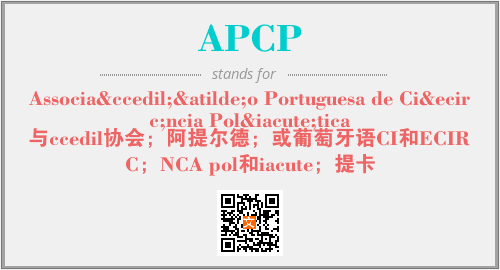 以上为Associação Portuguesa de Ciência Política英文缩略词APCP的中文解释,以及该英文缩写在英语的流行度、分类和应用领域方面的信息。