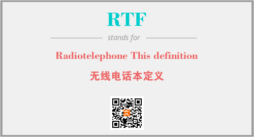 上述内容是“Radiotelephone This definition”作为“RTF”的缩写,解释为“无线电话本定义”时的信息,以及英文缩略词RTF所代表的英文单词,其对应的中文拼音、详细解释以及在英文中的流行度和相关分类、应用领域及应用示例等。