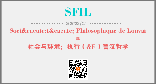 上述内容是“Société Philosophique de Louvain”作为“SFIL”的缩写,解释为“社会与环境;执行(&E)鲁汶哲学”时的信息,以及英文缩略词SFIL所代表的英文单词,其对应的中文拼音、详细解释以及在英文中的流行度和相关分类、应用领域及应用示例等。