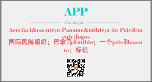 上述内容是“Asociación Panameña de Psicólogos”作为“APP”的缩写,解释为“国际民航组织;巴拿马ñ;一个psic和oacute;标识”时的信息,以及英文缩略词APP所代表的英文单词,其对应的中文拼音、详细解释以及在英文中的流行度和相关分类、应用领域及应用示例等。
