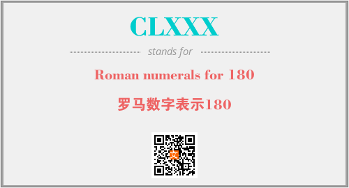 英文缩略词“CLXXX”经常作为“Roman numerals for 180”的英文缩写来使用,中文表示:“罗马数字表示180”。本文将详细介绍英文缩写词CLXXX所代表英文单词,其对应的中文拼音、详细解释以及在英语中的流行度。此外,还有关于缩略词CLXXX的分类、应用领域及相关应用示例等。