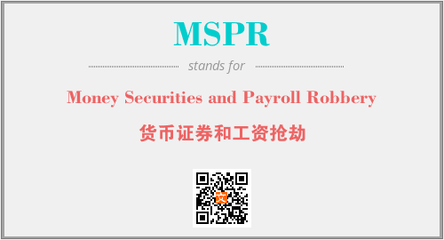 以上为Money Securities and Payroll Robbery英文缩略词MSPR的中文解释,以及该英文缩写在英语的流行度、分类和应用领域方面的信息。