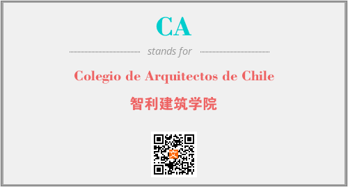 英文缩略词“CA”经常作为“Colegio de Arquitectos de Chile”的英文缩写来使用,中文表示:“智利建筑学院”。本文将详细介绍英文缩写词CA所代表英文单词,其对应的中文拼音、详细解释以及在英语中的流行度。此外,还有关于缩略词CA的分类、应用领域及相关应用示例等。