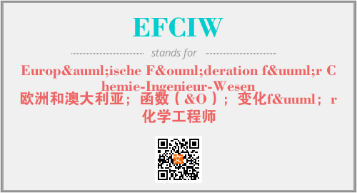 上述内容是“Europäische Föderation für Chemie-Ingenieur-Wesen”作为“EFCIW”的缩写,解释为“欧洲和澳大利亚;函数(&O);变化fü;r化学工程师”时的信息,以及英文缩略词EFCIW所代表的英文单词,其对应的中文拼音、详细解释以及在英文中的流行度和相关分类、应用领域及应用示例等。