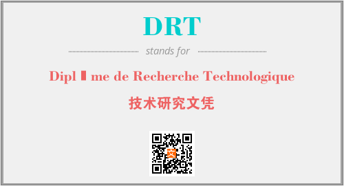 上述内容是“Diplôme de Recherche Technologique”作为“DRT”的缩写,解释为“技术研究文凭”时的信息,以及英文缩略词DRT所代表的英文单词,其对应的中文拼音、详细解释以及在英文中的流行度和相关分类、应用领域及应用示例等。