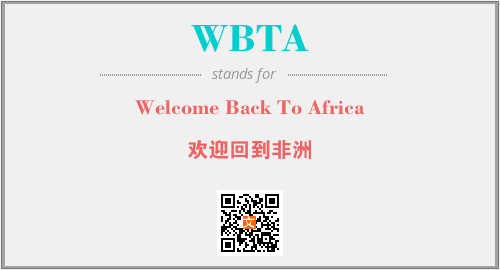 上述内容是“Welcome Back To Africa”作为“WBTA”的缩写,解释为“欢迎回到非洲”时的信息,以及英文缩略词WBTA所代表的英文单词,其对应的中文拼音、详细解释以及在英文中的流行度和相关分类、应用领域及应用示例等。