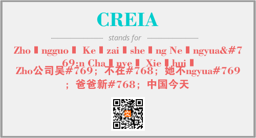 上述内容是“Zhōngguó Kězaìshēng Néngyuán Chǎnyè Xiéhuì”作为“CREIA”的缩写,解释为“Zho公司吴#769;不在#768;她不ngyua#769;爸爸新#768;中国今天”时的信息,以及英文缩略词CREIA所代表的英文单词,其对应的中文拼音、详细解释以及在英文中的流行度和相关分类、应用领域及应用示例等。