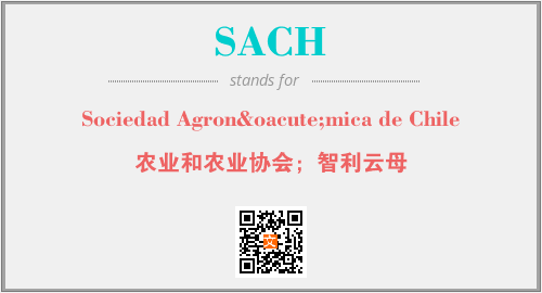 英文缩略词“SACH”经常作为“Sociedad Agronómica de Chile”的英文缩写来使用,中文表示:“农业和农业协会;智利云母”。本文将详细介绍英文缩写词SACH所代表英文单词,其对应的中文拼音、详细解释以及在英语中的流行度。此外,还有关于缩略词SACH的分类、应用领域及相关应用示例等。