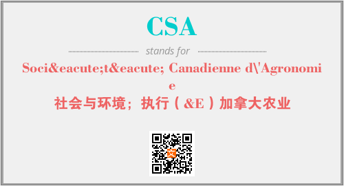 上述内容是“Société Canadienne d\'Agronomie”作为“CSA”的缩写,解释为“社会与环境;执行(&E)加拿大农业”时的信息,以及英文缩略词CSA所代表的英文单词,其对应的中文拼音、详细解释以及在英文中的流行度和相关分类、应用领域及应用示例等。