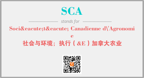 上述内容是“Société Canadienne d\'Agronomie”作为“SCA”的缩写,解释为“社会与环境;执行(&E)加拿大农业”时的信息,以及英文缩略词SCA所代表的英文单词,其对应的中文拼音、详细解释以及在英文中的流行度和相关分类、应用领域及应用示例等。