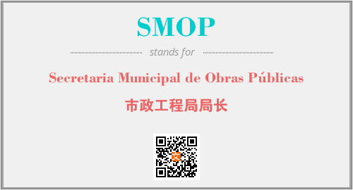 上述内容是“Secretaria Municipal de Obras Públicas”作为“SMOP”的缩写,解释为“市政工程局局长”时的信息,以及英文缩略词SMOP所代表的英文单词,其对应的中文拼音、详细解释以及在英文中的流行度和相关分类、应用领域及应用示例等。