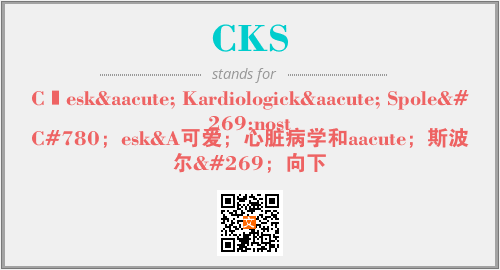 上述内容是“Česká Kardiologická Společnost”作为“CKS”的缩写,解释为“C#780;esk&A可爱;心脏病学和aacute;斯波尔č;向下”时的信息,以及英文缩略词CKS所代表的英文单词,其对应的中文拼音、详细解释以及在英文中的流行度和相关分类、应用领域及应用示例等。