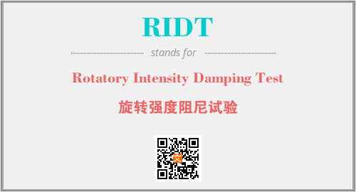 上述内容是“Rotatory Intensity Damping Test”作为“RIDT”的缩写,解释为“旋转强度阻尼试验”时的信息,以及英文缩略词RIDT所代表的英文单词,其对应的中文拼音、详细解释以及在英文中的流行度和相关分类、应用领域及应用示例等。