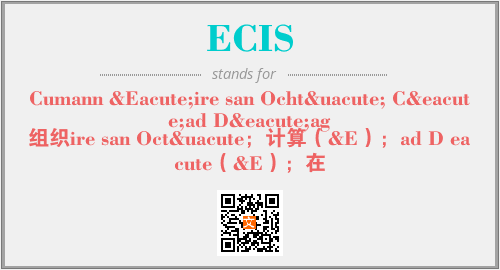 英文缩略词“ECIS”经常作为“Cumann Éire san Ochtú Céad Déag”的英文缩写来使用,中文表示:“组织ire san Octú;计算(&E);ad D eacute(&E);在”。本文将详细介绍英文缩写词ECIS所代表英文单词,其对应的中文拼音、详细解释以及在英语中的流行度。此外,还有关于缩略词ECIS的分类、应用领域及相关应用示例等。