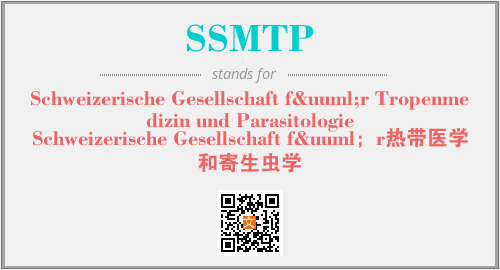 英文缩略词“SSMTP”经常作为“Schweizerische Gesellschaft für Tropenmedizin und Parasitologie”的英文缩写来使用,中文表示:“Schweizerische Gesellschaft fü;r热带医学和寄生虫学”。本文将详细介绍英文缩写词SSMTP所代表英文单词,其对应的中文拼音、详细解释以及在英语中的流行度。此外,还有关于缩略词SSMTP的分类、应用领域及相关应用示例等。