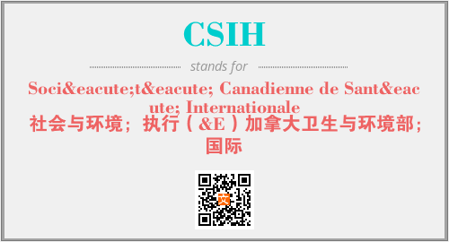 上述内容是“Société Canadienne de Santé Internationale”作为“CSIH”的缩写,解释为“社会与环境;执行(&E)加拿大卫生与环境部;国际”时的信息,以及英文缩略词CSIH所代表的英文单词,其对应的中文拼音、详细解释以及在英文中的流行度和相关分类、应用领域及应用示例等。
