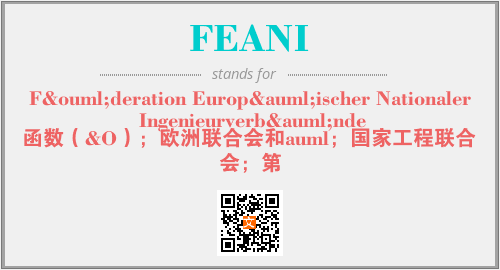 上述内容是“Föderation Europäischer Nationaler Ingenieurverbände”作为“FEANI”的缩写,解释为“函数(&O);欧洲联合会和auml;国家工程联合会;第”时的信息,以及英文缩略词FEANI所代表的英文单词,其对应的中文拼音、详细解释以及在英文中的流行度和相关分类、应用领域及应用示例等。