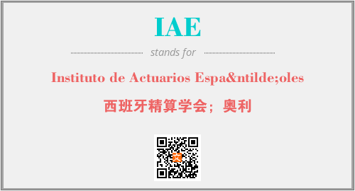 英文缩略词“IAE”经常作为“Instituto de Actuarios Españoles”的英文缩写来使用,中文表示:“西班牙精算学会;奥利”。本文将详细介绍英文缩写词IAE所代表英文单词,其对应的中文拼音、详细解释以及在英语中的流行度。此外,还有关于缩略词IAE的分类、应用领域及相关应用示例等。