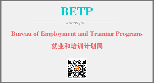 上述内容是“Bureau of Employment and Training Programs”作为“BETP”的缩写,解释为“就业和培训计划局”时的信息,以及英文缩略词BETP所代表的英文单词,其对应的中文拼音、详细解释以及在英文中的流行度和相关分类、应用领域及应用示例等。
