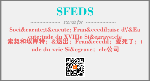 英文缩略词“SFEDS”经常作为“Société Française d\'Étude du XVIIIe Siècle”的英文缩写来使用,中文表示:“索契和埃库特;&退出;Franç;爱死了;tude du xvie Siè;cle公司”。本文将详细介绍英文缩写词SFEDS所代表英文单词,其对应的中文拼音、详细解释以及在英语中的流行度。此外,还有关于缩略词SFEDS的分类、应用领域及相关应用示例等。