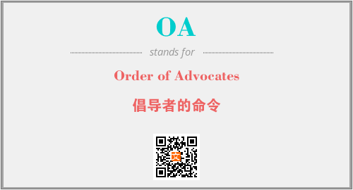 上述内容是“Order of Advocates”作为“OA”的缩写,解释为“倡导者的命令”时的信息,以及英文缩略词OA所代表的英文单词,其对应的中文拼音、详细解释以及在英文中的流行度和相关分类、应用领域及应用示例等。