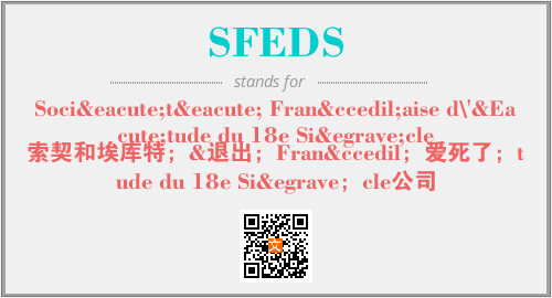 上述内容是“Société Française d\'Étude du 18e Siècle”作为“SFEDS”的缩写,解释为“索契和埃库特;&退出;Franç;爱死了;tude du 18e Siè;cle公司”时的信息,以及英文缩略词SFEDS所代表的英文单词,其对应的中文拼音、详细解释以及在英文中的流行度和相关分类、应用领域及应用示例等。