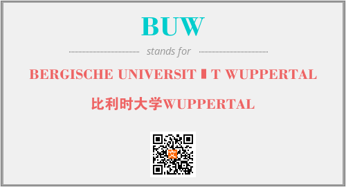上述内容是“BERGISCHE UNIVERSITÄT WUPPERTAL”作为“BUW”的缩写,解释为“比利时大学WUPPERTAL”时的信息,以及英文缩略词BUW所代表的英文单词,其对应的中文拼音、详细解释以及在英文中的流行度和相关分类、应用领域及应用示例等。