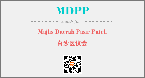 英文缩略词“MDPP”经常作为“Majlis Daerah Pasir Puteh”的英文缩写来使用,中文表示:“白沙区议会”。本文将详细介绍英文缩写词MDPP所代表英文单词,其对应的中文拼音、详细解释以及在英语中的流行度。此外,还有关于缩略词MDPP的分类、应用领域及相关应用示例等。