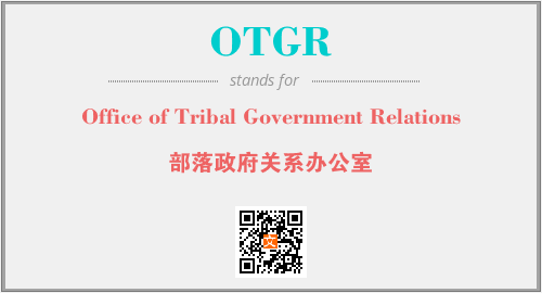 上述内容是“Office of Tribal Government Relations”作为“OTGR”的缩写,解释为“部落政府关系办公室”时的信息,以及英文缩略词OTGR所代表的英文单词,其对应的中文拼音、详细解释以及在英文中的流行度和相关分类、应用领域及应用示例等。
