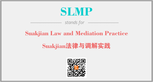 上述内容是“Suakjian Law and Mediation Practice”作为“SLMP”的缩写,解释为“Suakjian法律与调解实践”时的信息,以及英文缩略词SLMP所代表的英文单词,其对应的中文拼音、详细解释以及在英文中的流行度和相关分类、应用领域及应用示例等。